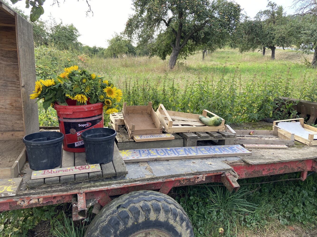Die Bäume tragen noch ihre letzten Früchte, Quitten leuchten golden, Trauben schmecken süß und voll. Sonnenblumen und Gladiolen richten sich noch einmal dem Himmel entgegen, bevor sie ihre Blätter fallen lassen. Und die Bäume kleiden sich in ein feierliches Gewand aus Rot und Gelb, als wollten sie ein letztes Mal in voller Pracht leuchten. Jedes einzelne Gewächs erzählt die Geschichte von Wurzeln, die Halt gaben, von Sonne und Regen, die im Wechsel ein Ganzes schufen.